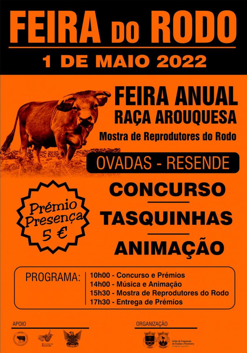 A União das Freguesias de Ovadas e Panchorras realiza este ano a Feira do Rodo em Ovadas. 10h00 - Concurso e Prémios 14h00 - Música e Animação 15h30 - Mostra de Reprodutores do RODO 17h30 - Entrega dos Prémios FEIRA ANUAL DA RAÇA AROUQUESA