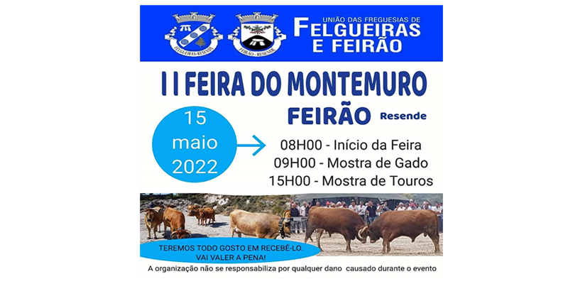 A União das Freguesias de Felgueiras e Feirão, dia 15 de maio, vai levar a cabo a realização da II FEIRA DO MONTEMURO, em Feirão.