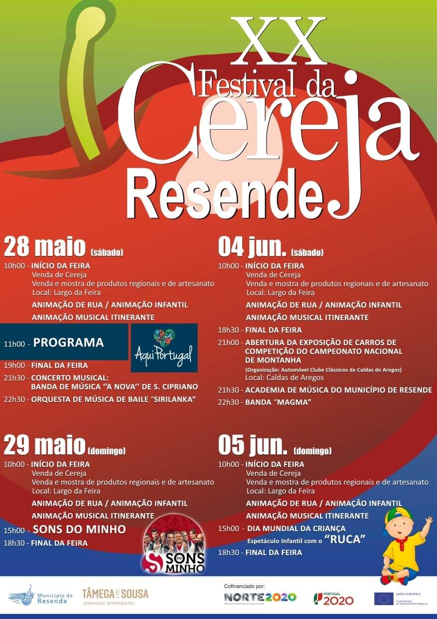 Dia 28 e 29 de Maio celebração do XX Festival da Cereja de Resende com atuação da Banda de Música "A Nova" de São Cipriano dia 28 de maio às 21h30