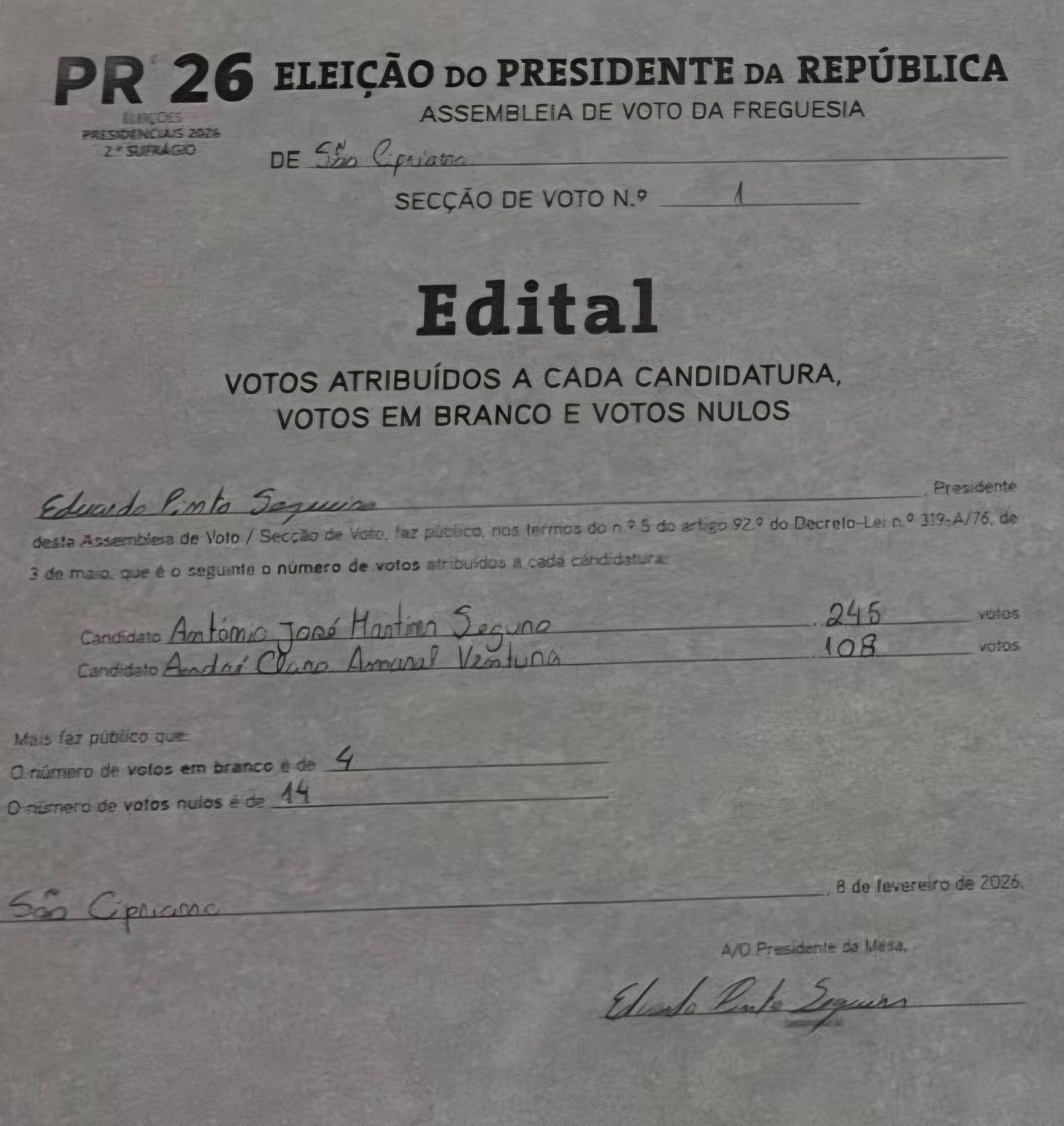 Resultados da Freguesia de São Cipriano - Eleições Presidenciais 2026, Segunda Volta Resultados de São Cipriano