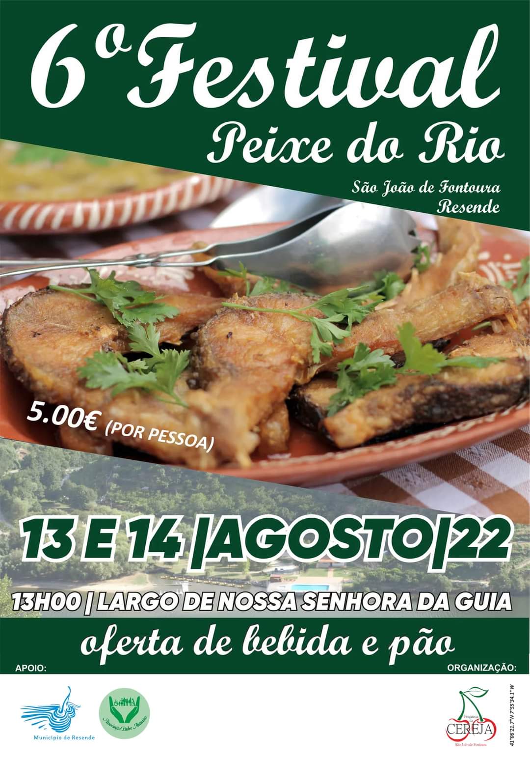 Nos dias 13 e 14 de agosto, a partir das 13h00, no Largo da Nossa Senhora da Guia, em São João de Fontoura decorre o 6º Festival de Peixe do Rio, com o apoio do Município. O custo de participação é de 5€. Compareça!