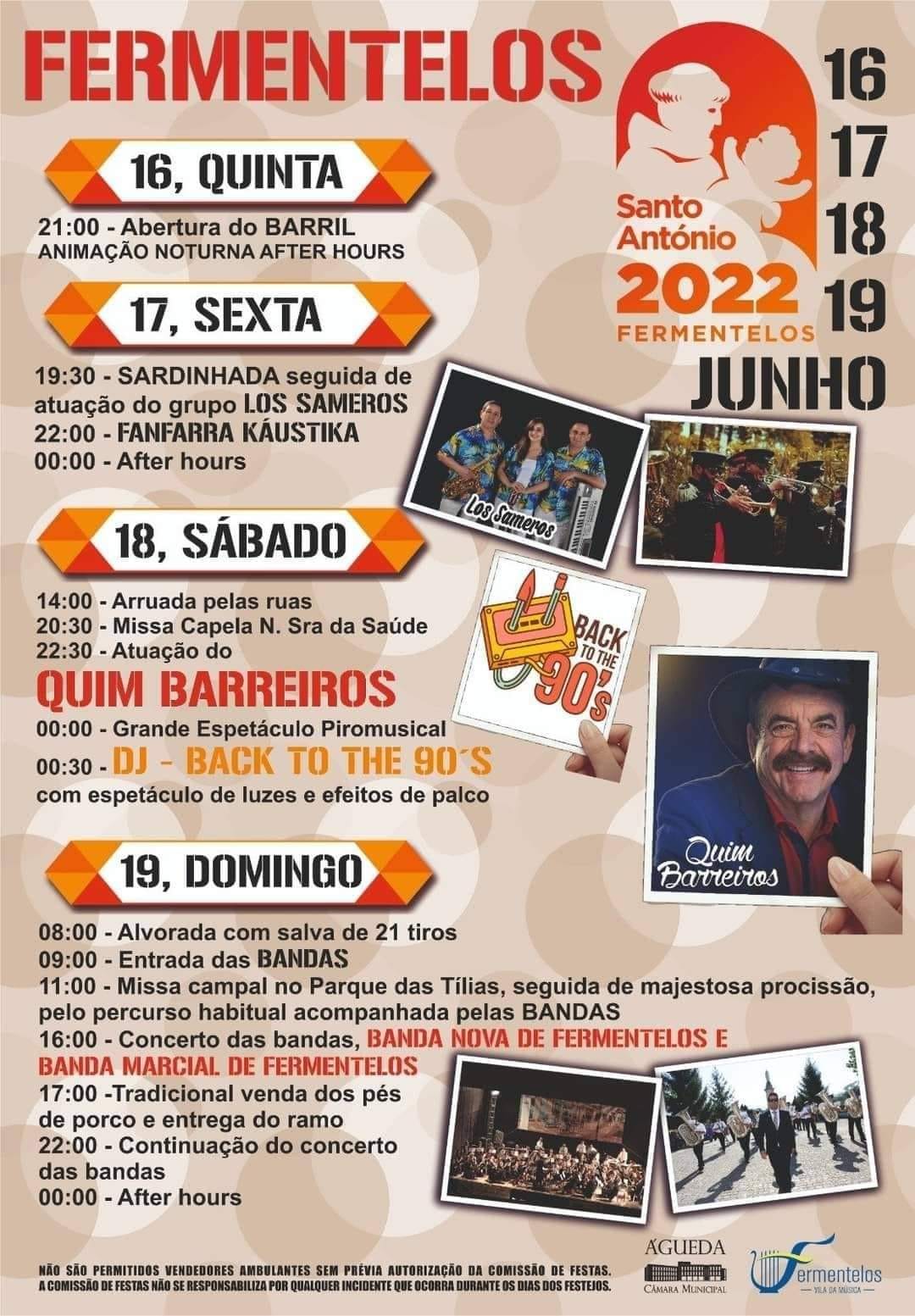 Este fim de semana Fermentelos irá realizar a festa de Santo António com atuação das bandas filarmónicas no domingo dia 19 de Junho. No dia anterior terão o artista Quim Barreiros às 22h30. Apareçam.
