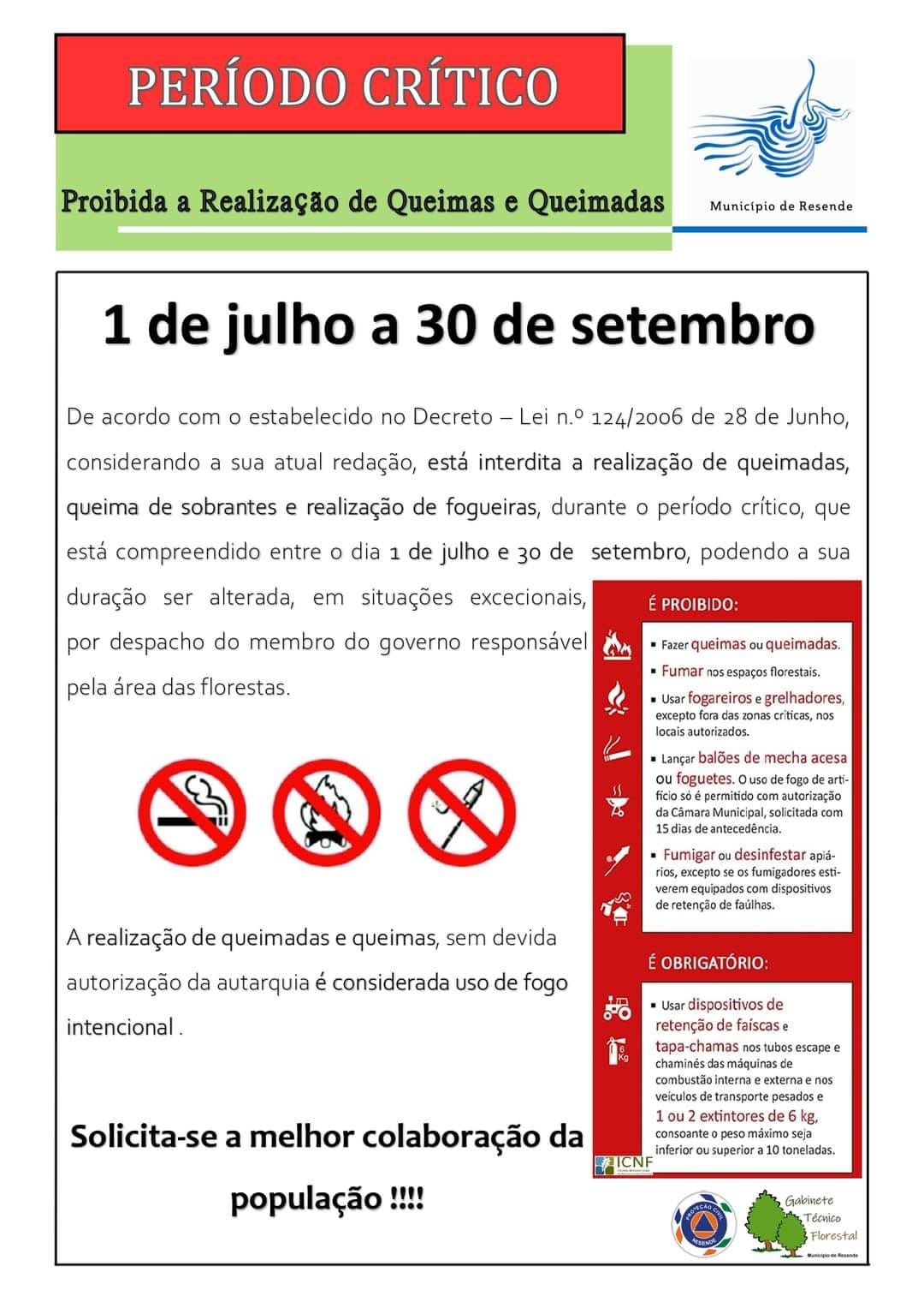 O Município de Resende informa que é proibido proceder à operação de queimadas, queima de sobrantes e fogueiras entre os dias 1 de julho e 30 de setembro de 2021.